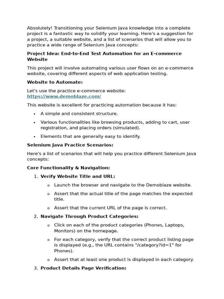 Selenium Java Practice Scenarios: