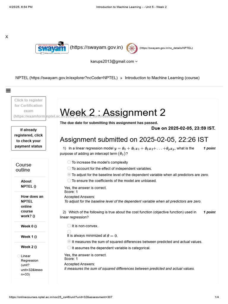 4/25/25, 6:54 PM Introduction to Machine Learning - - Unit 5 - Week 2