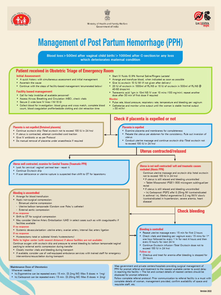 • If scar dehiscence or uterine rupture is suspected than shift to OT for laparotomy Continue uterine massage and oxytocin drip (total oxytocin