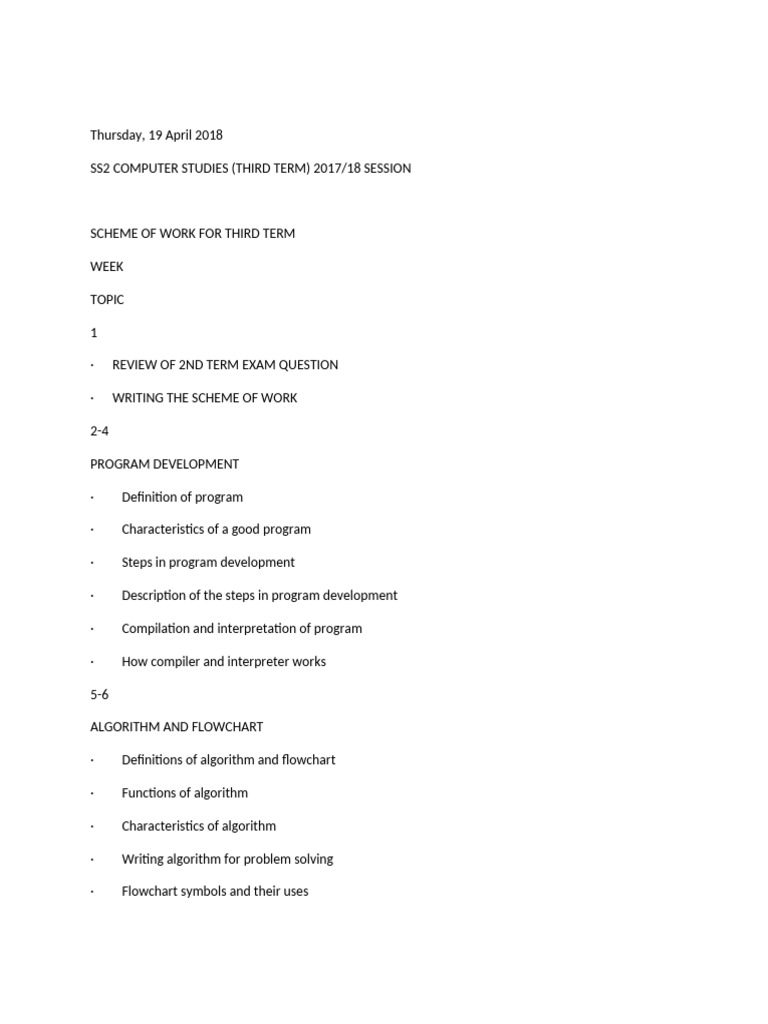 SS2 COMPUTER STUDIES (THIRD TERM) 2017/18 SESSION