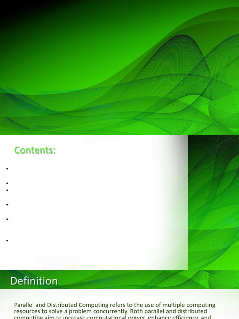 resources to solve a problem concurrently. Both parallel and distributed