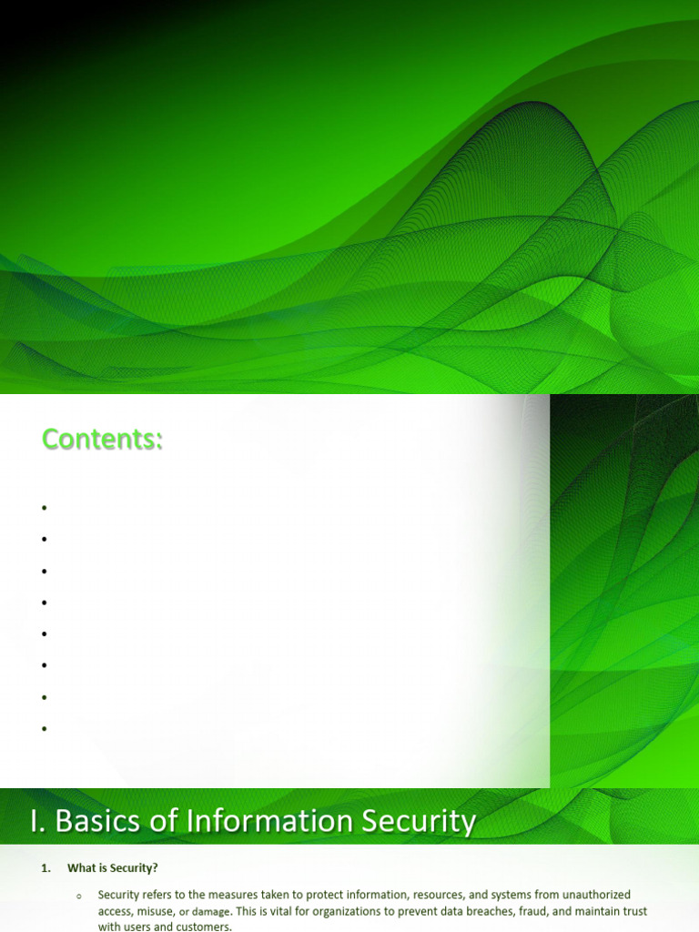 o Security refers to the measures taken to protect information, resources, and systems from unauthorized
