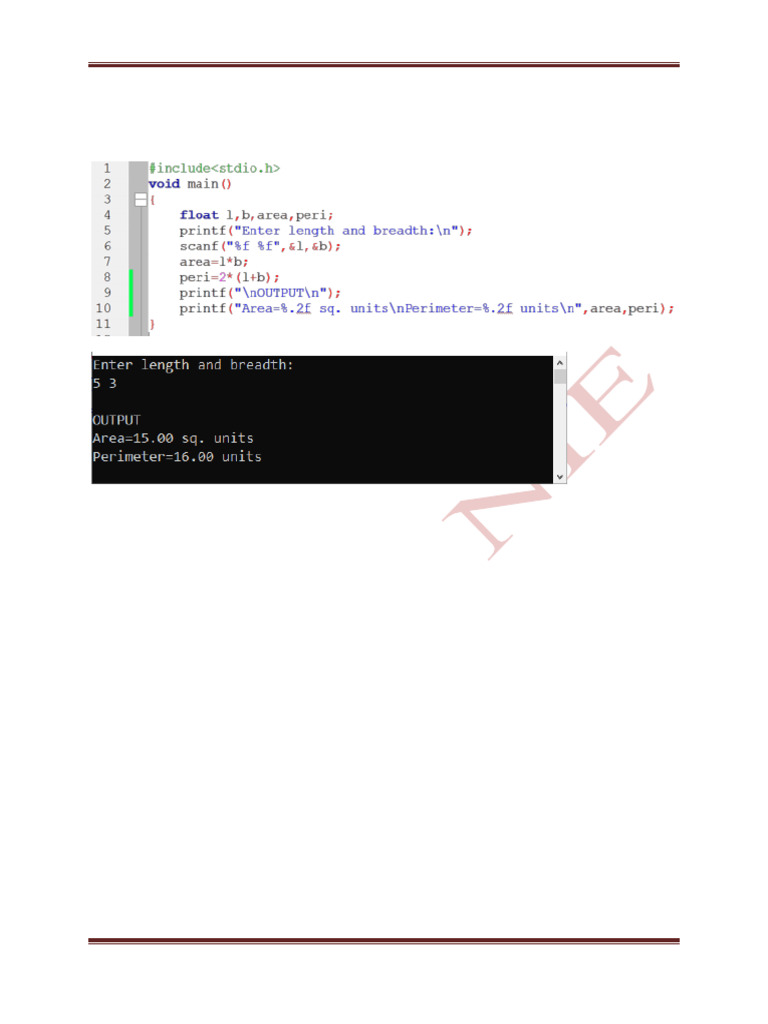 1. Write a program to find the area and perimeter of a rectangle by reading length and