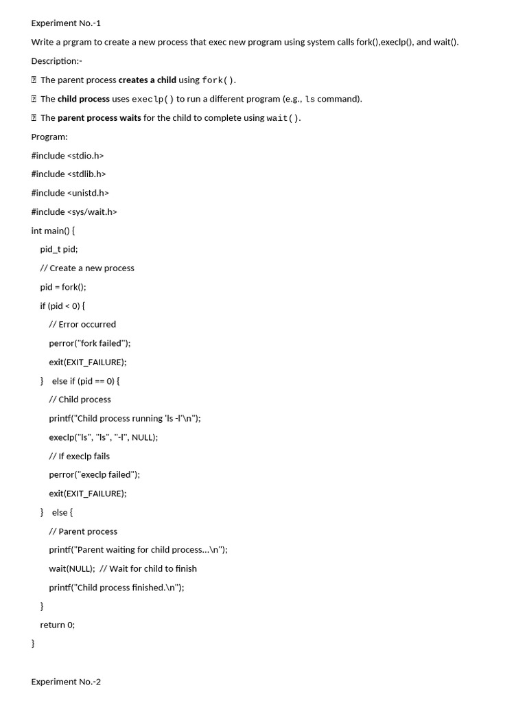 Write a prgram to create a new process that exec new program using system calls fork(),execlp(), and wait().