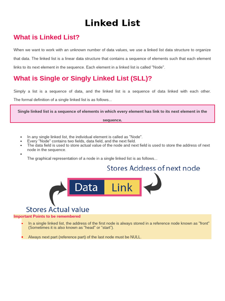 Simply a list is a sequence of data, and the linked list is a sequence of data linked with each other.