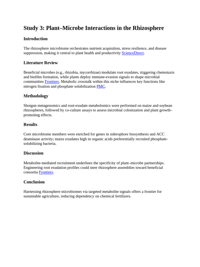 Study 3: Plant–Microbe Interactions in the Rhizosphere