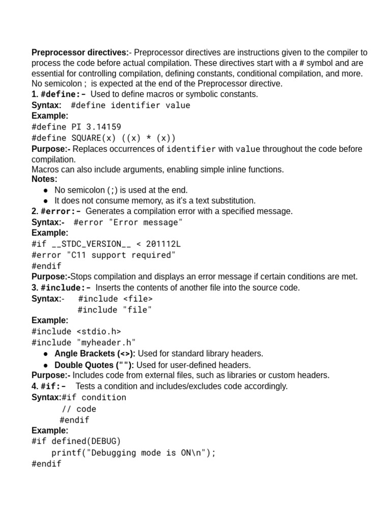 reprocessor directives:- Preprocessor directives are instructions given to the compiler to