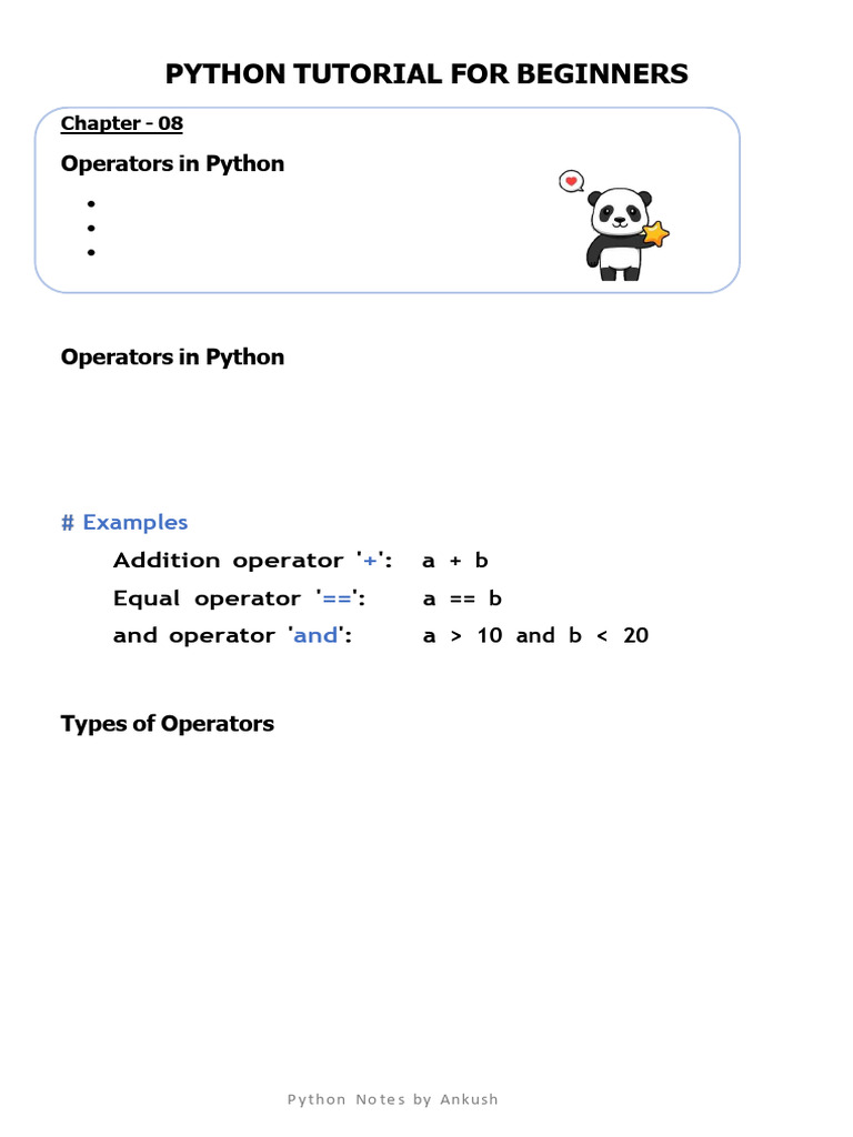 Operators: These are the special symbols/keywords. Eg: + , * , /, etc.