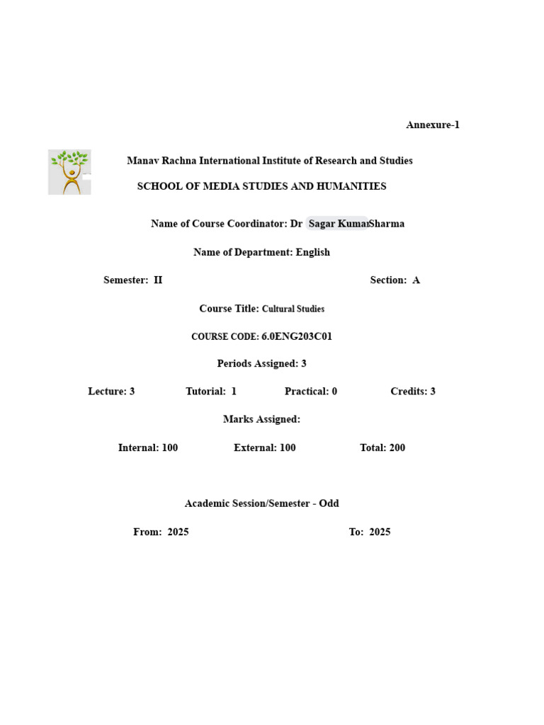 Name of Course Coordinator: Dr Sagar KumarSharma