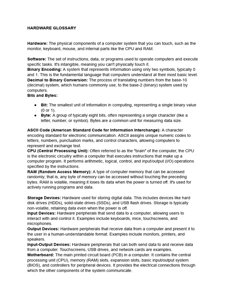 ● Bit: The smallest unit of information in computing, representing a single binary value