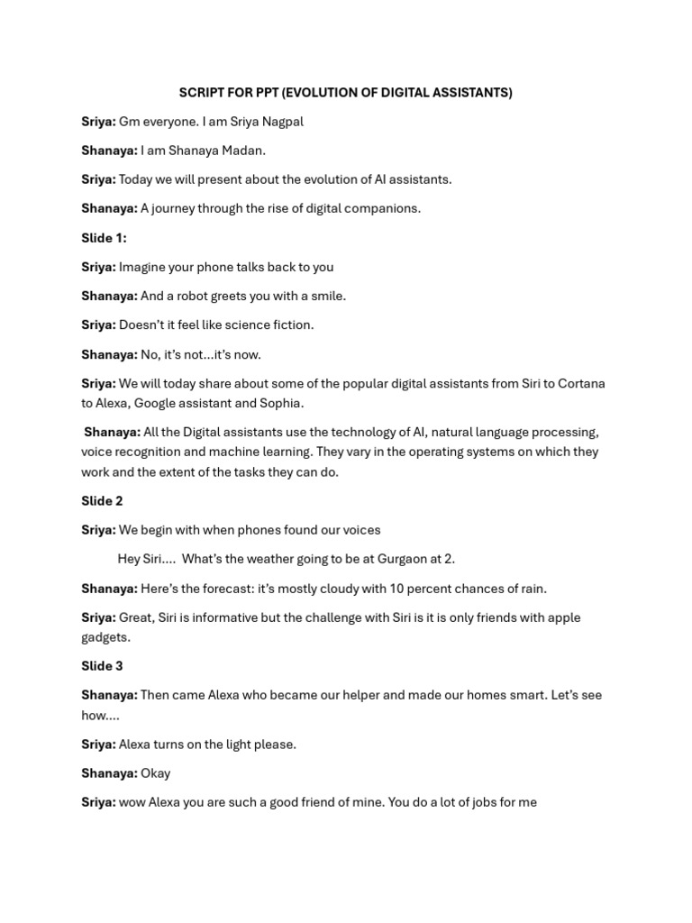 SCRIPT FOR PPT (EVOLUTION OF DIGITAL ASSISTANTS)