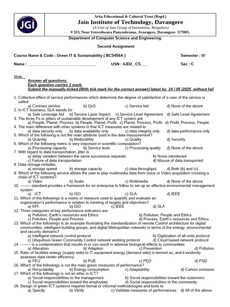 Course Name & Code : Green IT & Sustainability ( BCS456A ) Semester : IV