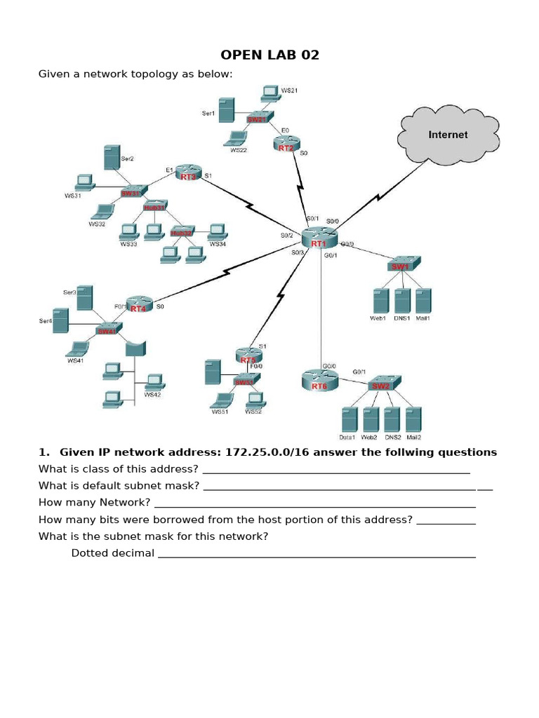 1. Given IP network address: 172.25.0.0/16 answer the follwing questions