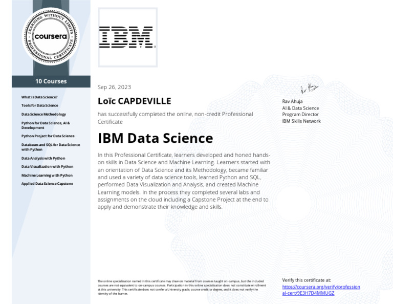 Data Science Methodology has successfully completed the online, non-credit Professional Program Director