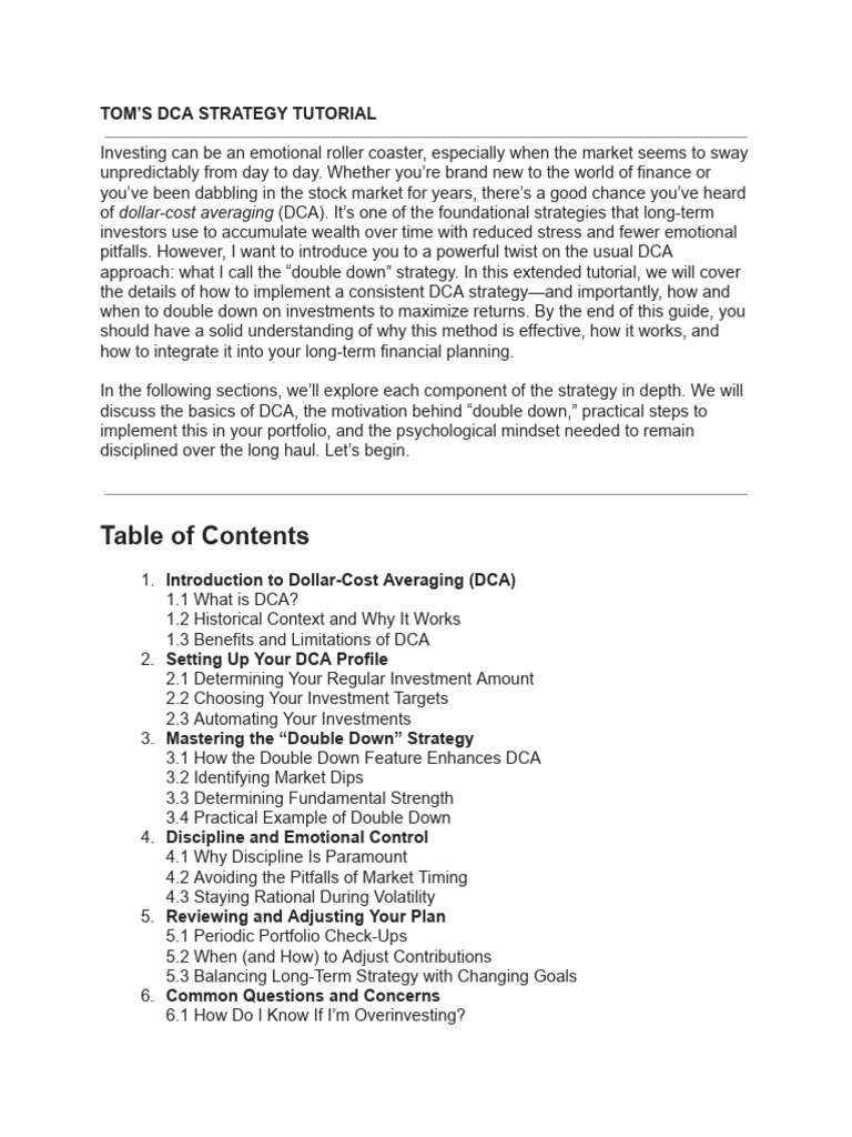 discuss the basics of DCA, the motivation behind “double down,” practical steps to