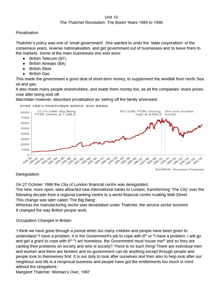 Thatcher’s policy was one of ‘small government’. She wanted to undo the ‘state corporatism’ of the