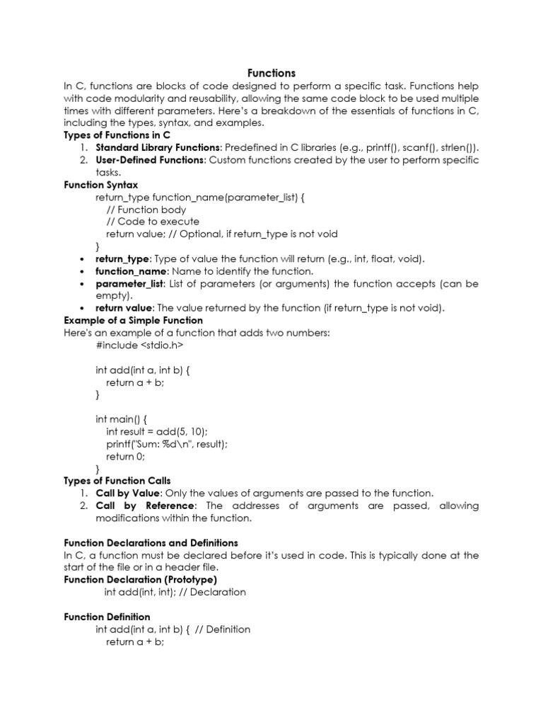 times with different parameters. Here’s a breakdown of the essentials of functions in C,