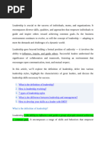 Leadership is the ability of an individual or a group of individuals to influence and guide