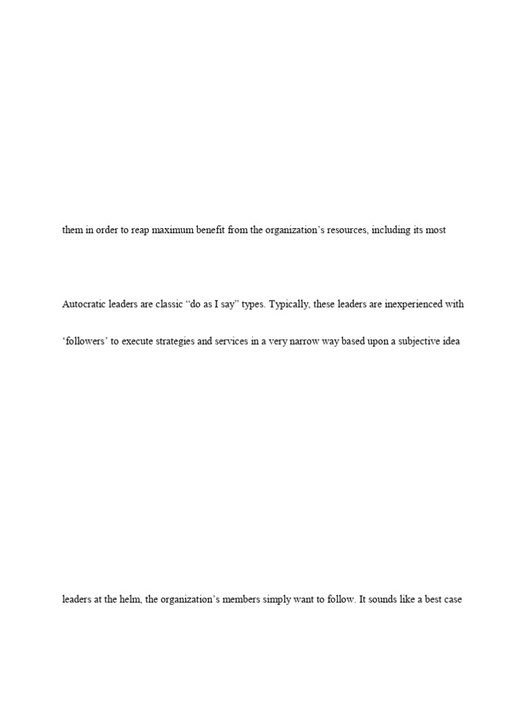 management. Autocratic leaders can damage an organization irreparably as they force their
