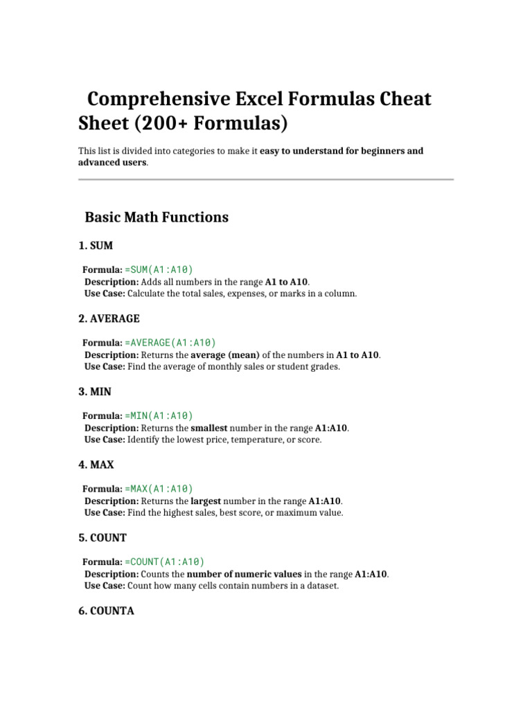 📝 Description: Counts all non-empty cells in A1:A10, including text and numbers.
