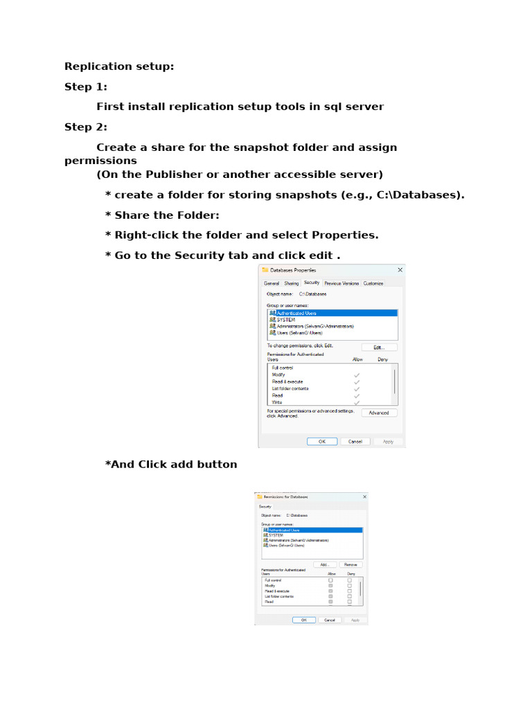 * create a folder for storing snapshots (e.g., C:\Databases).