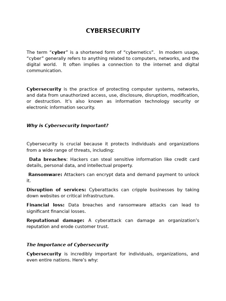 The Importance of Cybersecurity