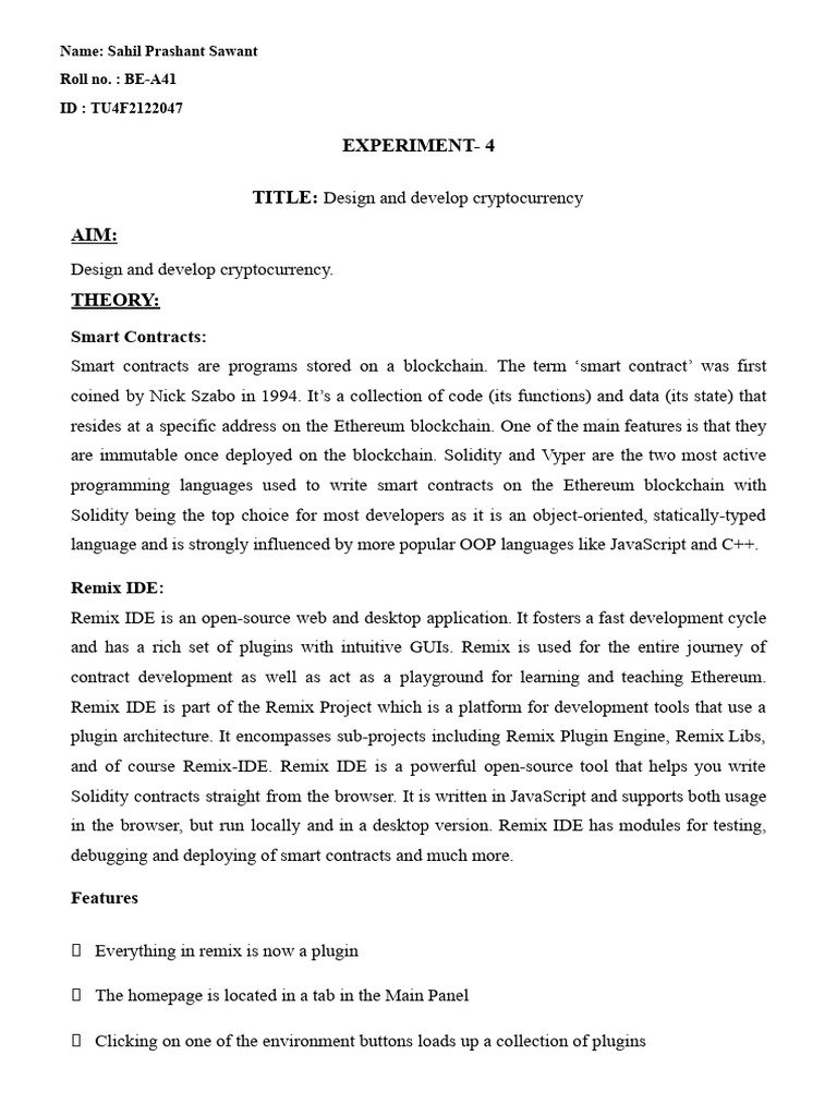 In this Experiment we have learned about cryptocurrency also designed and deployed