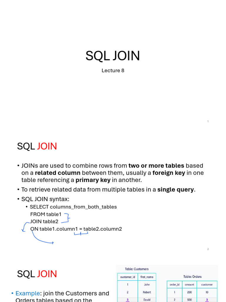 JOIN Orders ON Customers.customer_id = Orders.customer_id