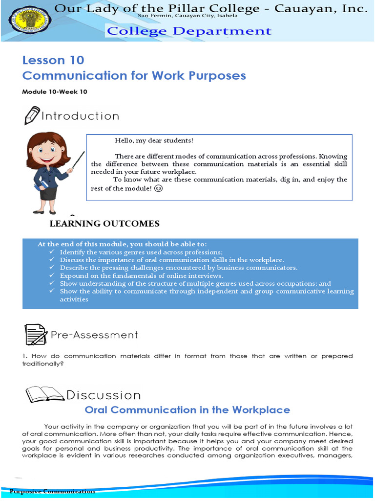 of oral communication. More often than not, your daily tasks require effective communication. Hence,