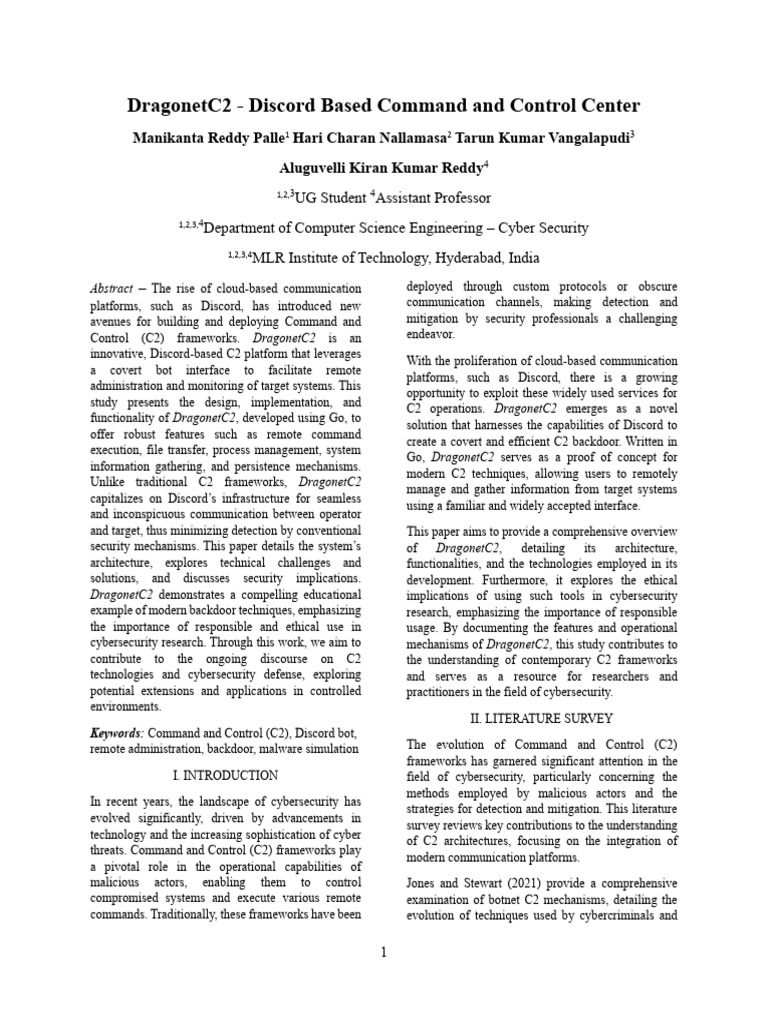 cybersecurity research. Through this work, we aim to mechanisms of DragonetC2, this study contributes to