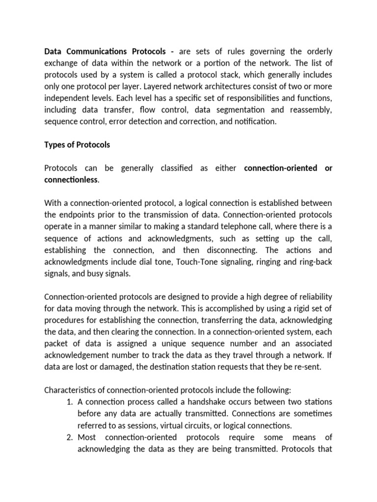 the endpoints prior to the transmission of data. Connection-oriented protocols
