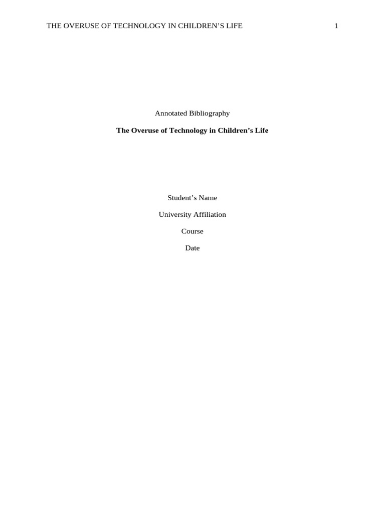 THE OVERUSE OF TECHNOLOGY IN CHILDREN’S LIFE 1