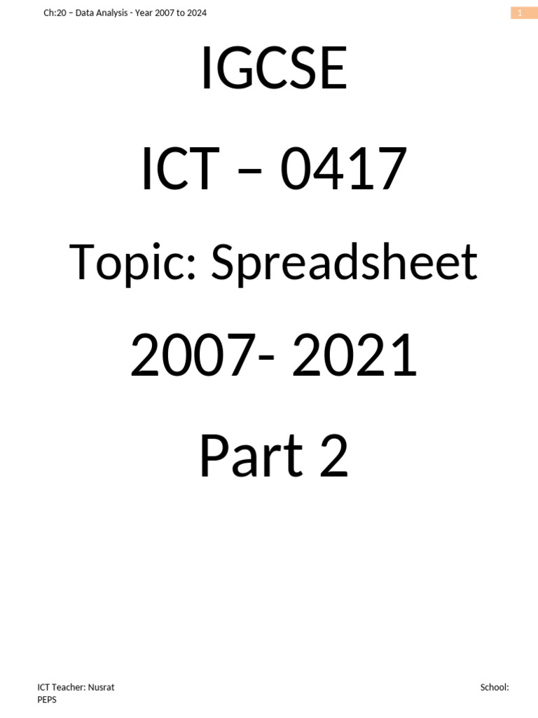 Topic: Spreadsheet