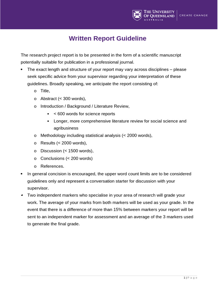 guidelines. Broadly speaking, we anticipate the report consisting of: