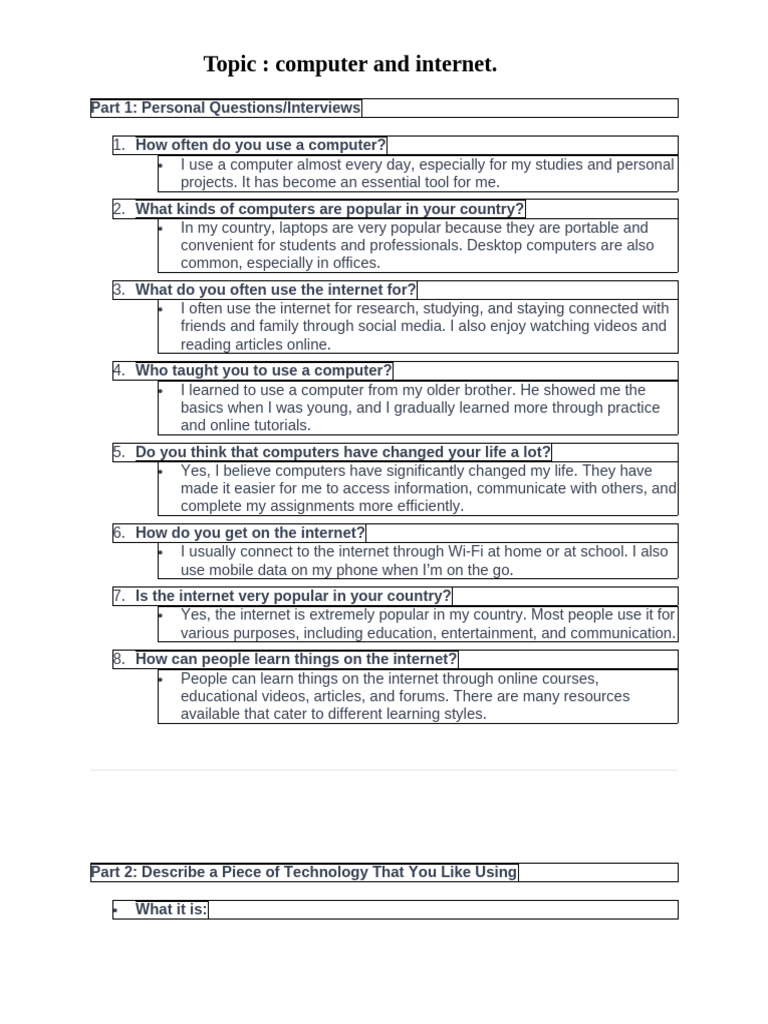 Part 2: Describe a Piece of Technology That You Like Using