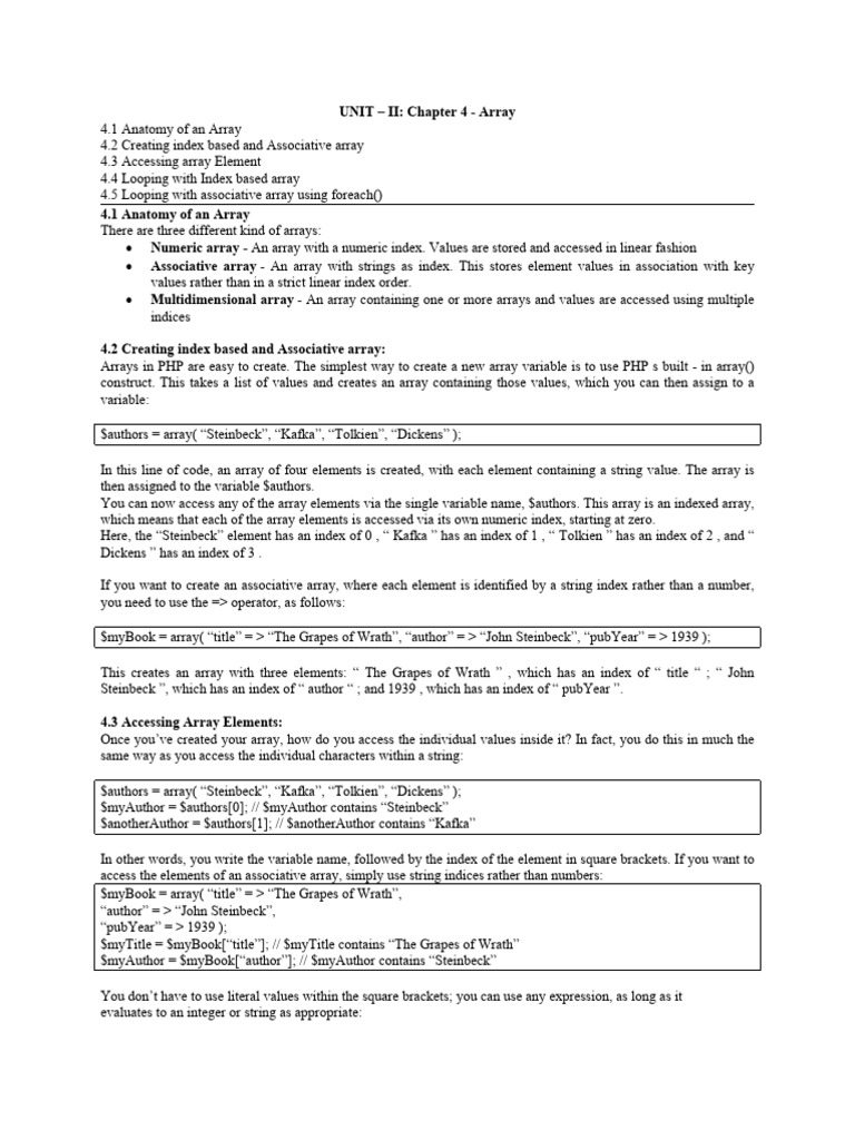 4.2 Creating index based and Associative array