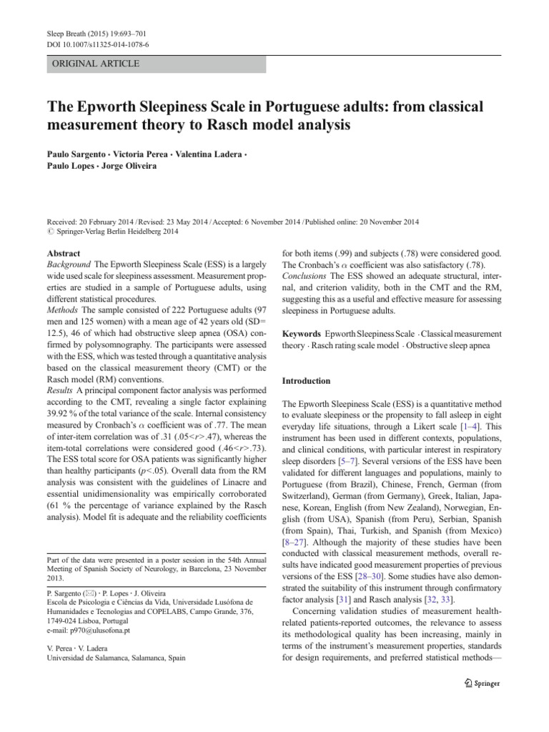 12.5), 46 of which had obstructive sleep apnea (OSA) con- Keywords Epworth Sleepiness Scale . Classical measurement