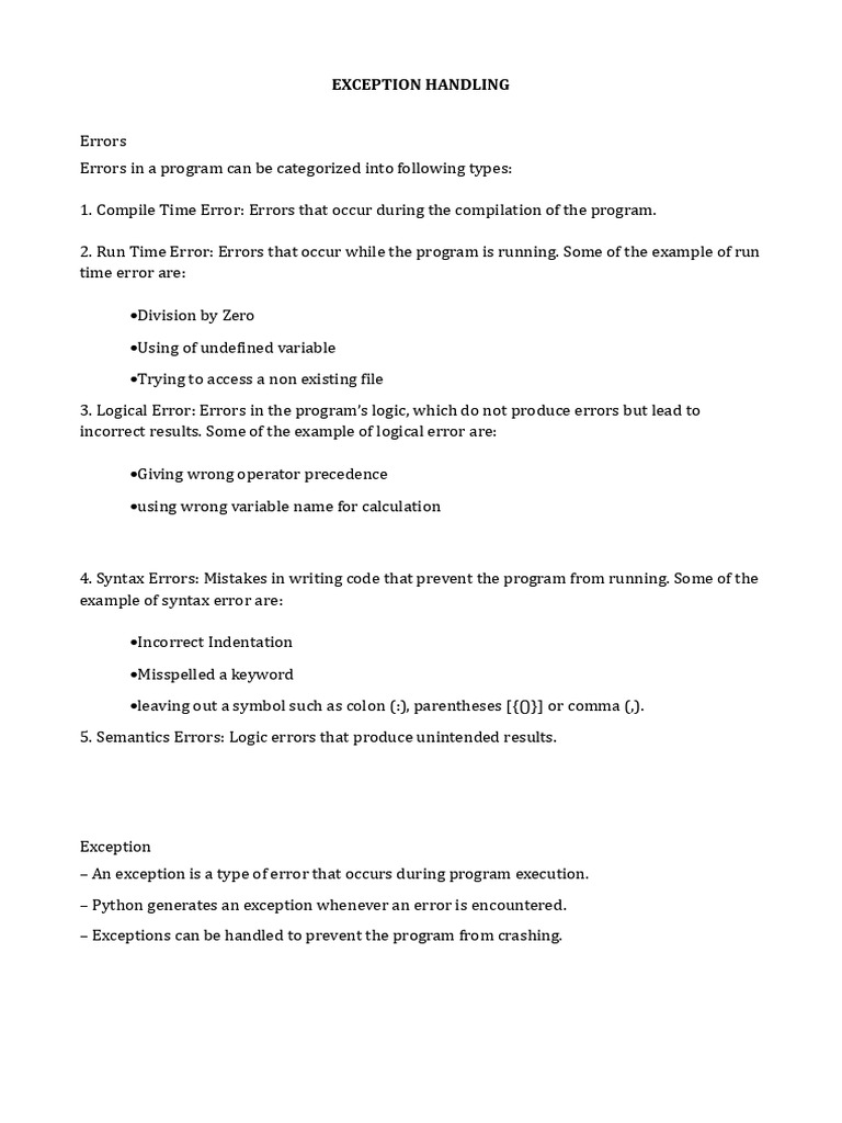 2. Run Time Error: Errors that occur while the program is running. Some of the example of run