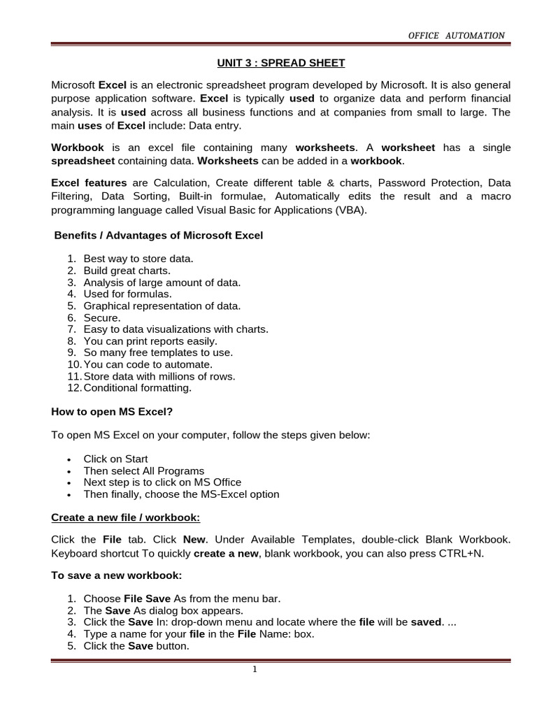 Benefits / Advantages of Microsoft Excel