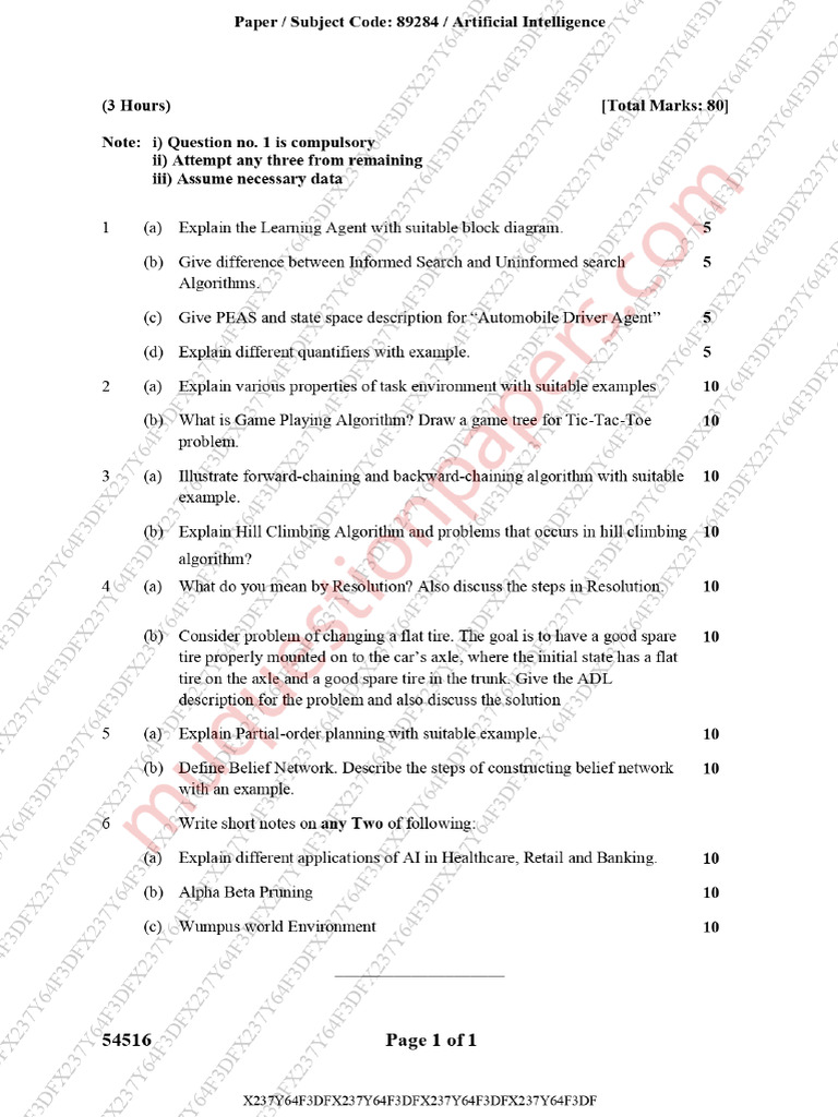 Paper / Subject Code: 89284 / Artificial Intelligence