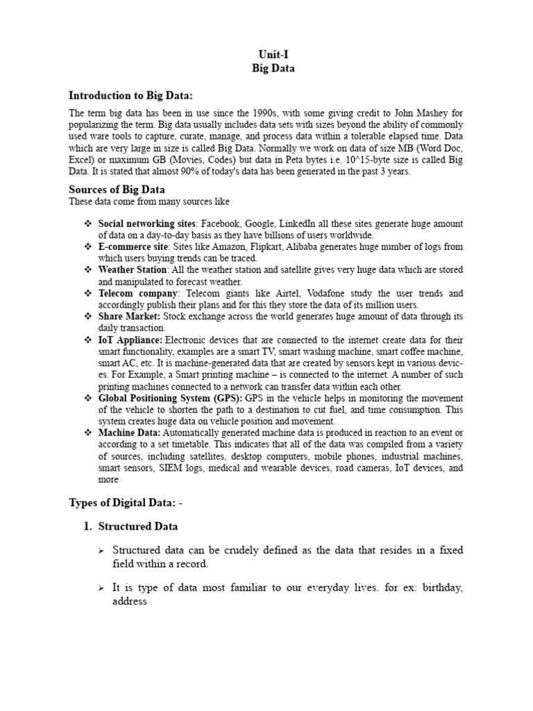 Unstructured Data: Data that does not have a fixed format and is not easily