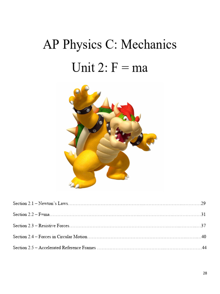 AP Physics C: Mechanics Unit 2 – Newton’ Laws