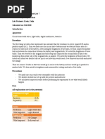 Set the light bulb to the following resistance that is indicated in the chart and take the current and