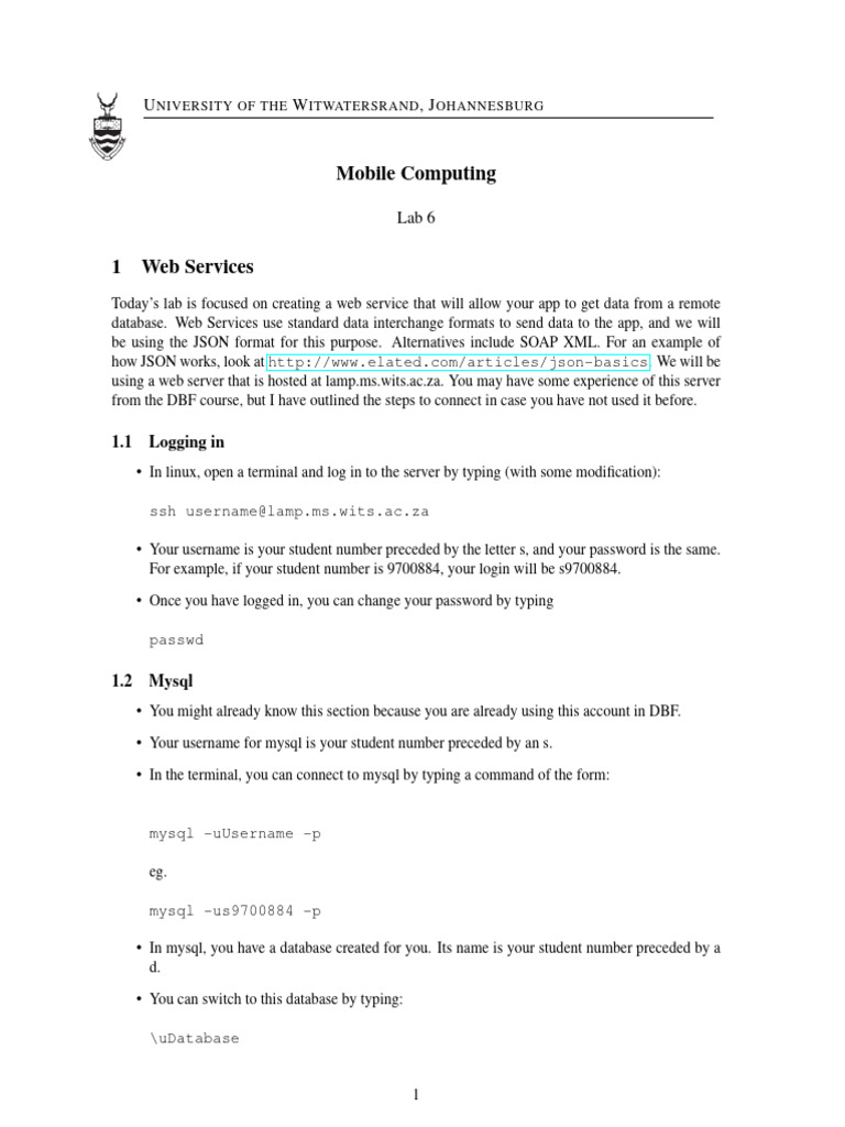 using a web server that is hosted at lamp.ms.wits.ac.za. You may have some experience of this server