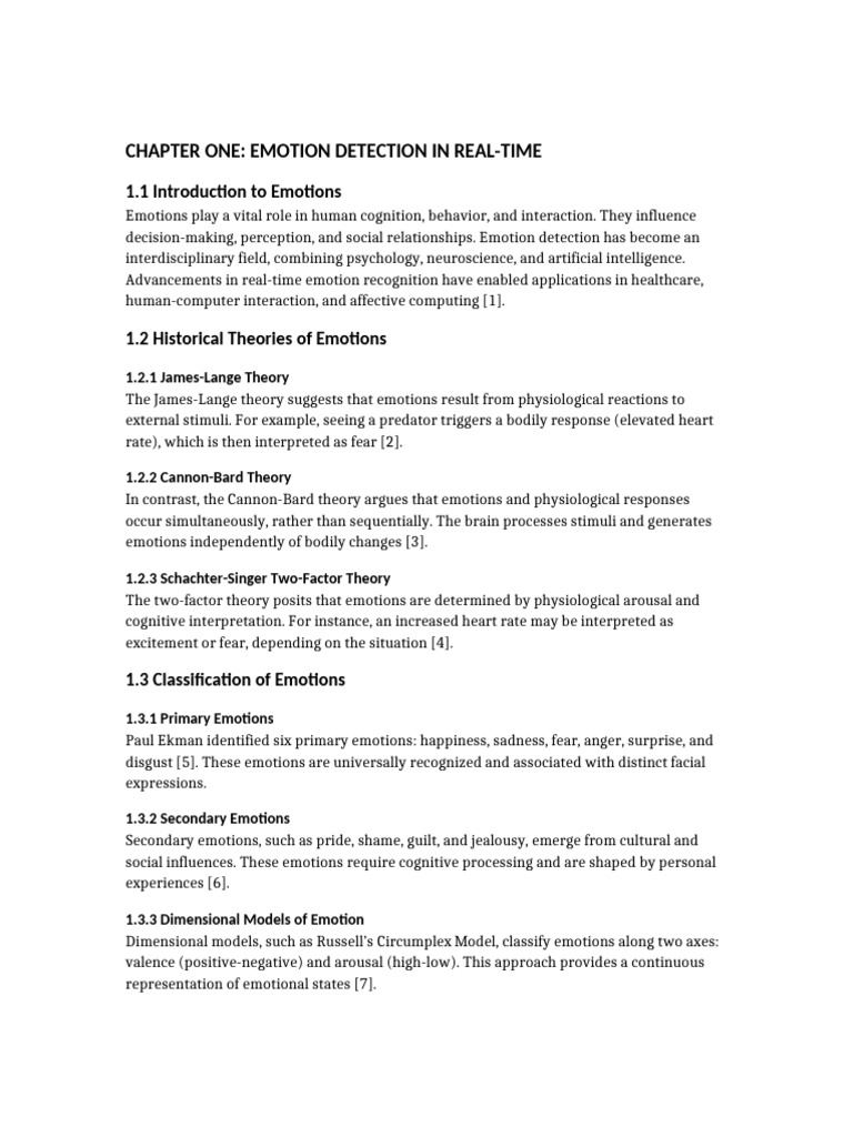 This chapter provided an in-depth overview of emotions, their classification, and detection