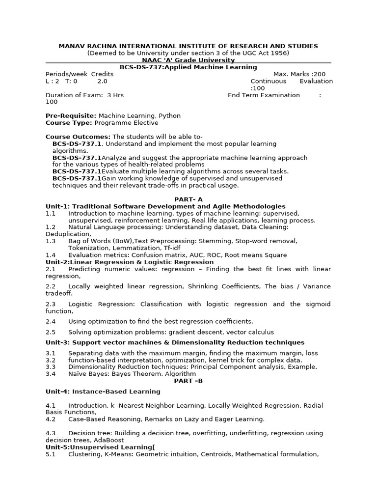 BCS-DS-737.1Analyze and suggest the appropriate machine learning approach