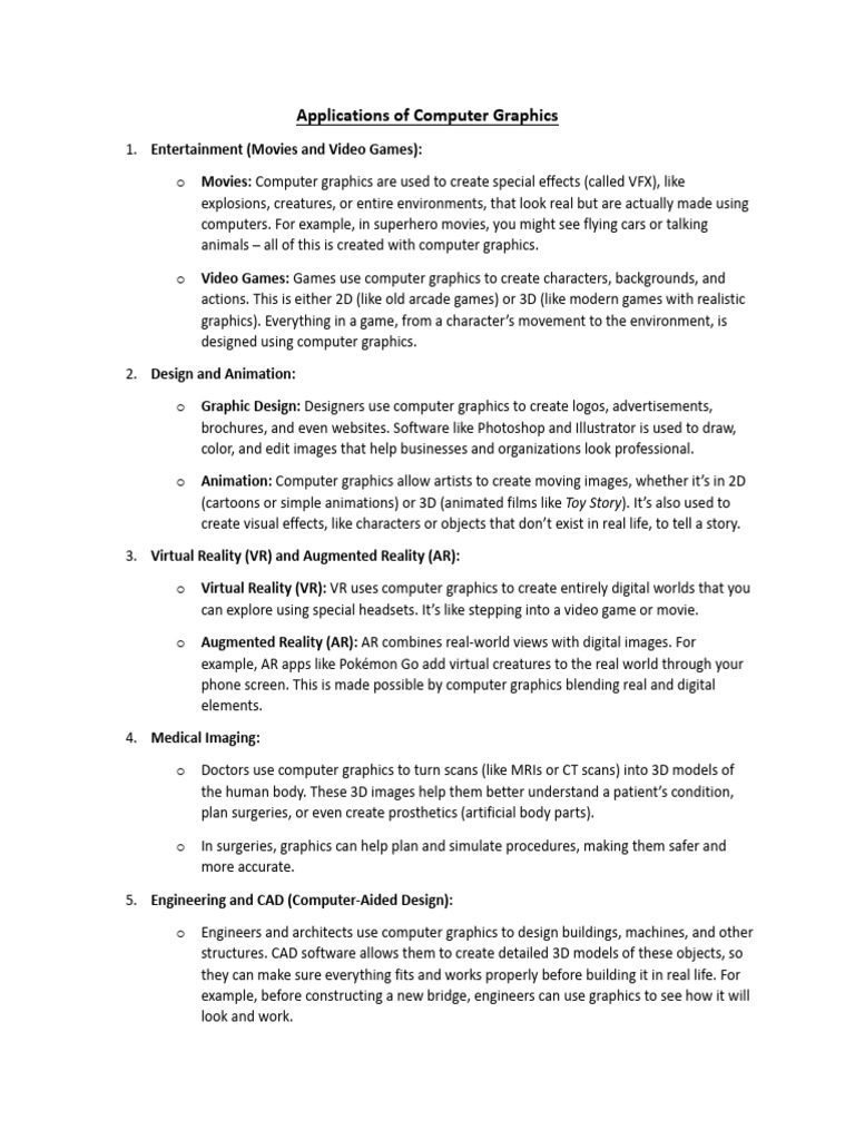 interactions. Let's delve deeper into the various applications of computer graphics in this sector:
