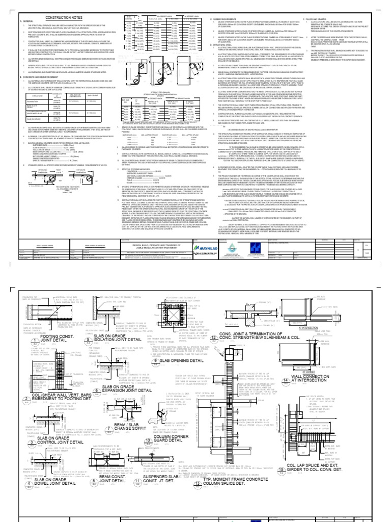 FOOTINGS, WALLS, COLUMNS, SLABS, MAT AND OTHER RC STRUCTURAL ELEMENTS, WITHOUT SUBMITTAL AND FOR DEWATERING FOUNDATION AREAS, AND THE CONSTRUCTION OF COFFERDAM AND/OR TEMPORARY
