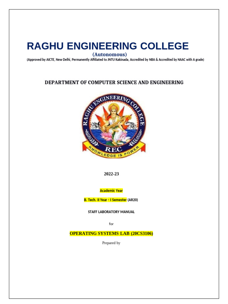 The course objectives of Operating Systems Lab are to discuss and make student familiar with the