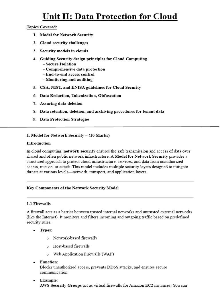 9. Data Protection Strategies in Cloud Computing – (10 Marks)